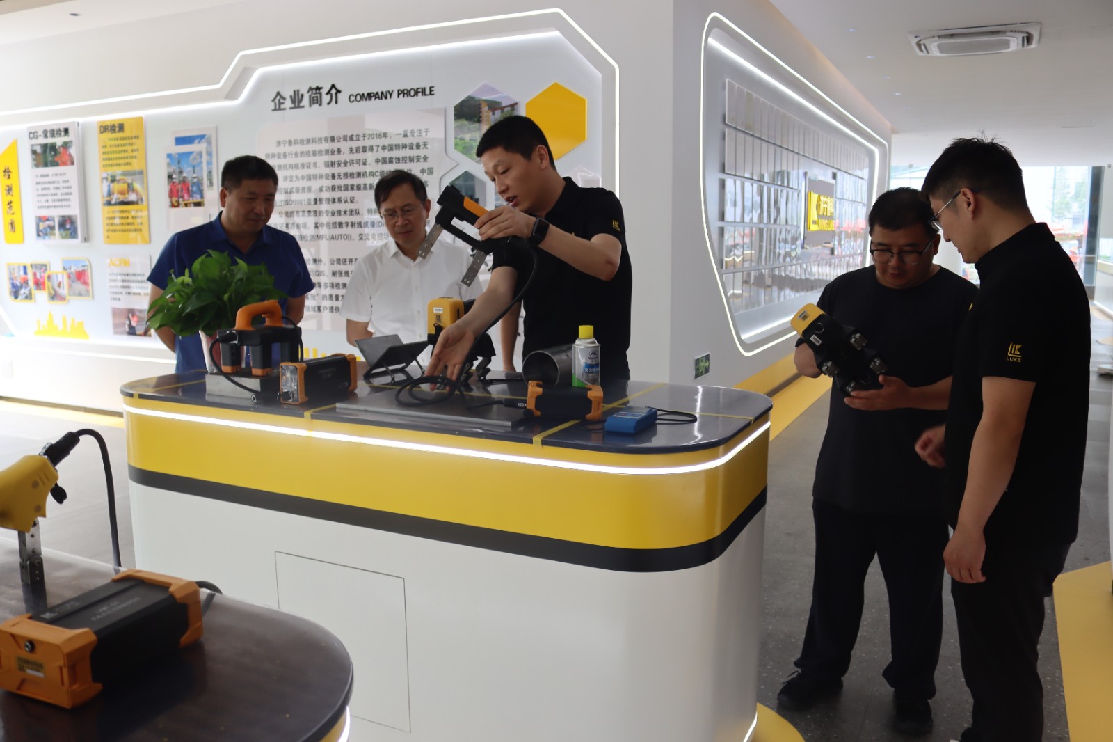 2024年7月18日江蘇省特種設備安全監督檢驗研究院徐州分院領導一行蒞臨濟寧魯科參觀指導,先后參觀了我公司的展廳、綜合辦公樓、研發生產中心,詳細了解了我公司的便攜式磁粉探傷儀、ACFM交流電磁場檢測儀、檢測爬行機器人等產品的研發、生產過程,對我公司表示高度認可,同時對公司產品表現了濃厚的興趣。