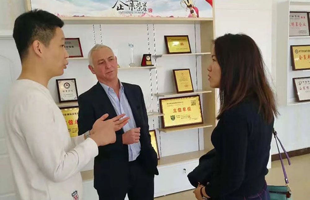 當(dāng)天,薛總代表公司對外賓的到來表示熱烈歡迎,并安排了細(xì)致的接待工作。在薛總的陪同下,Haines先生和魏女士參觀考察了公司生產(chǎn)車間、倉庫、銷售人員辦公室、展品廳等,向外賓展現(xiàn)了我公司的生產(chǎn)理念和實力。